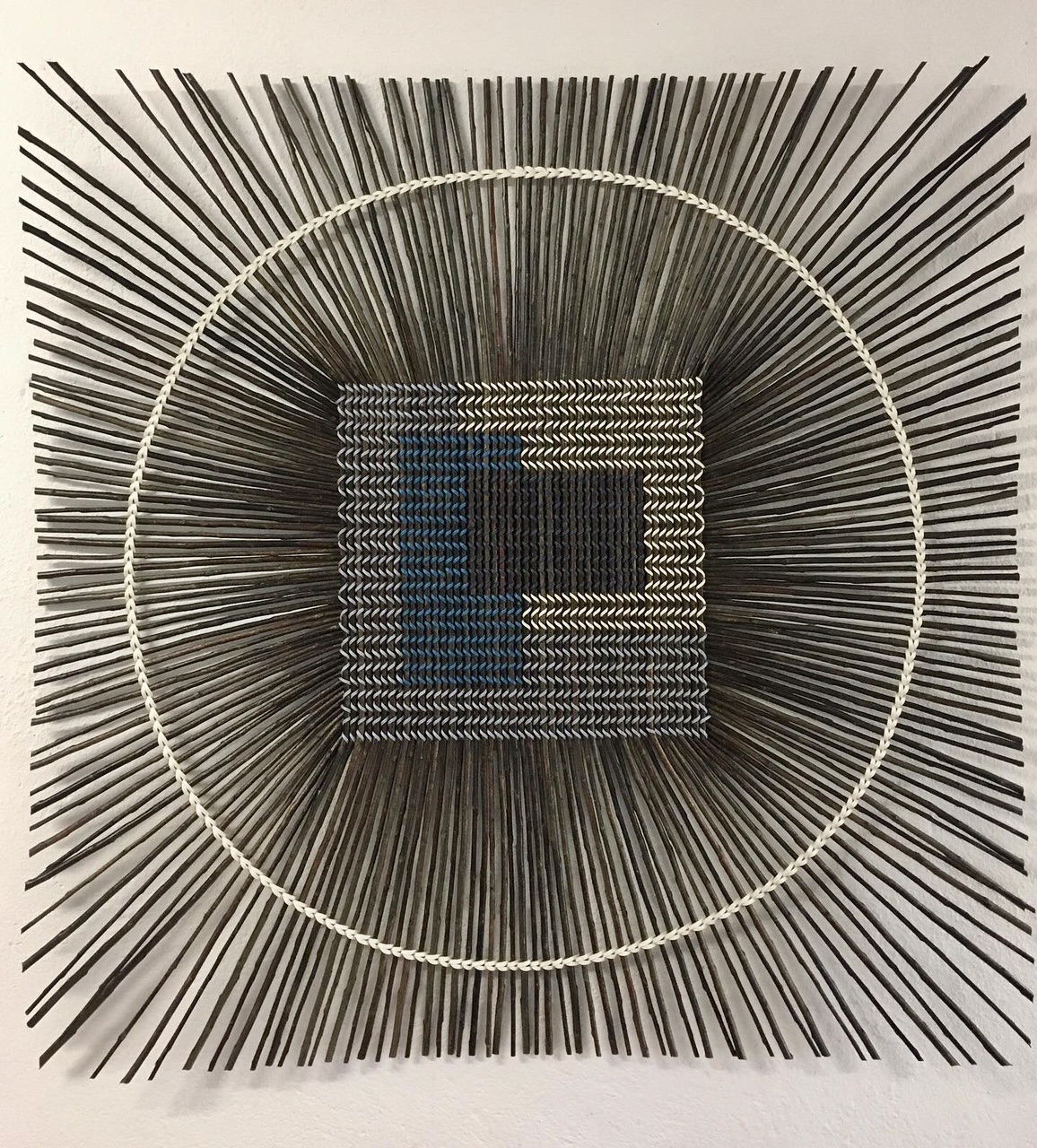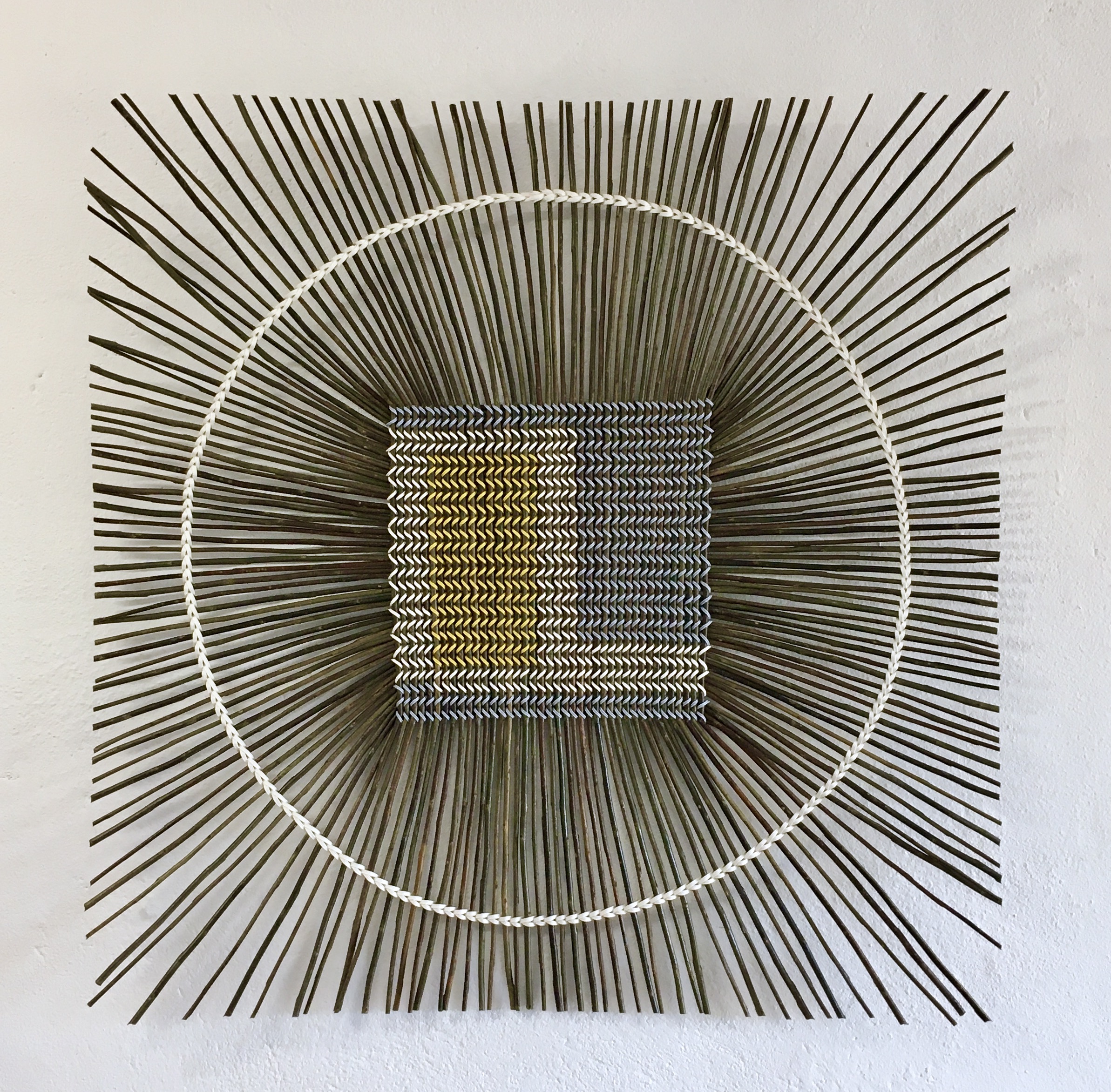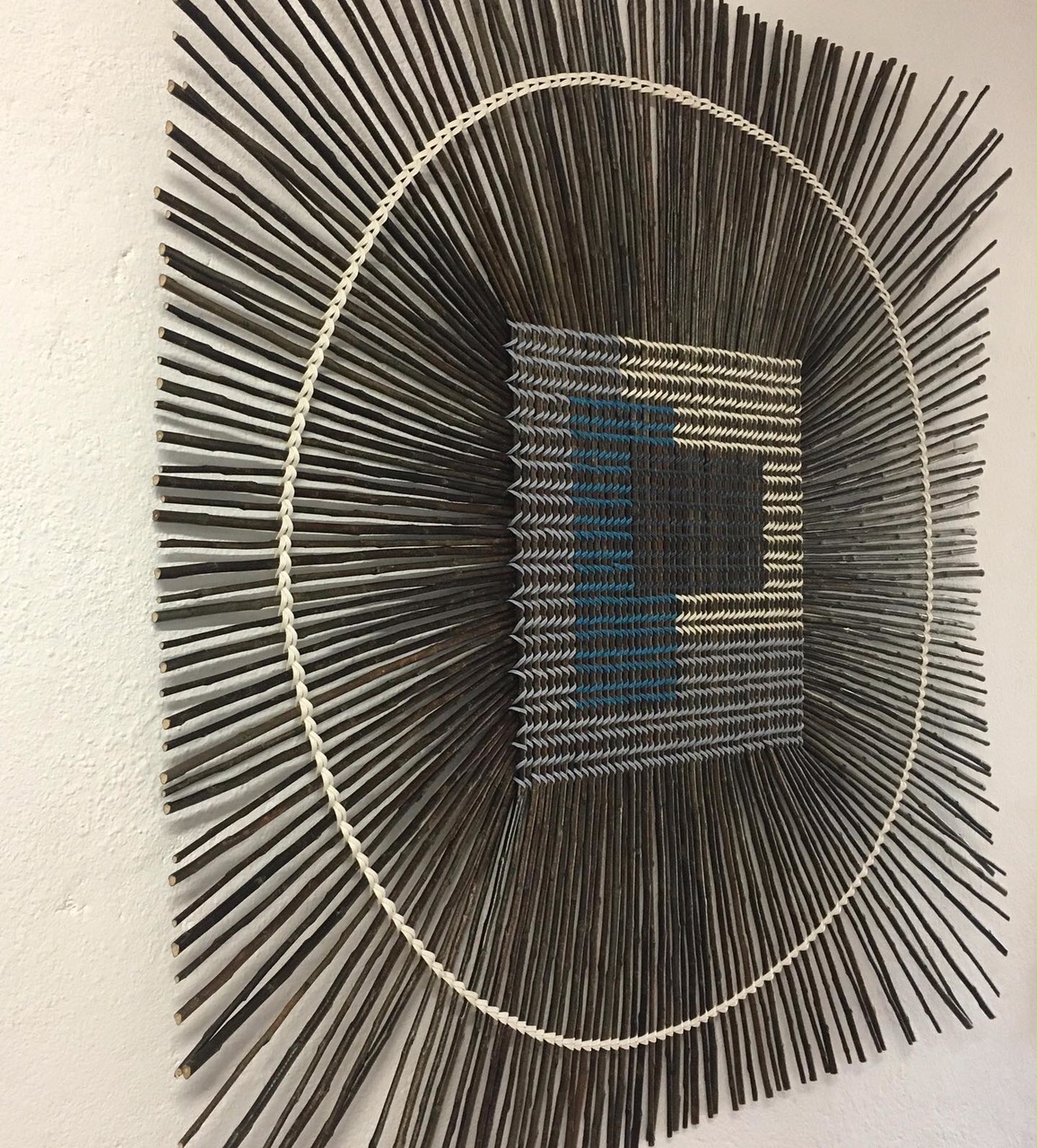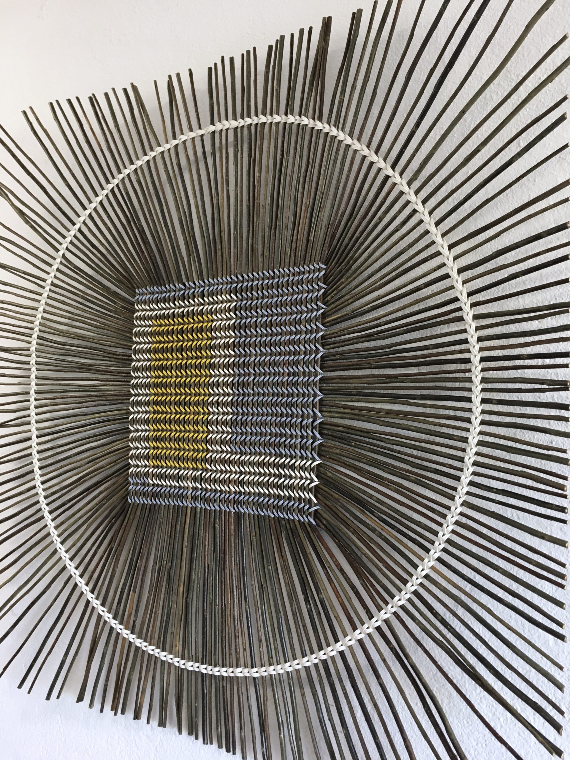 The ODERO weaving technic is well known in Ouganda for making traditional baskets and in Germany for fine basketry. The following items are made with recycled paperbands woven around willow. They are realised to be hung on a wall.